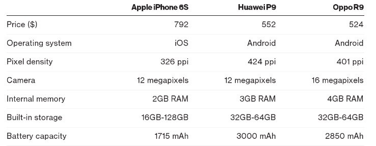 不过,成本对消费者购买手机的影响越来越大。16GB iPhone 6s的起售价为5288元,但是华为高配版P9的售价只有3688元,包括提供64GB存储空间,配备指纹扫描仪、前后摄像头。